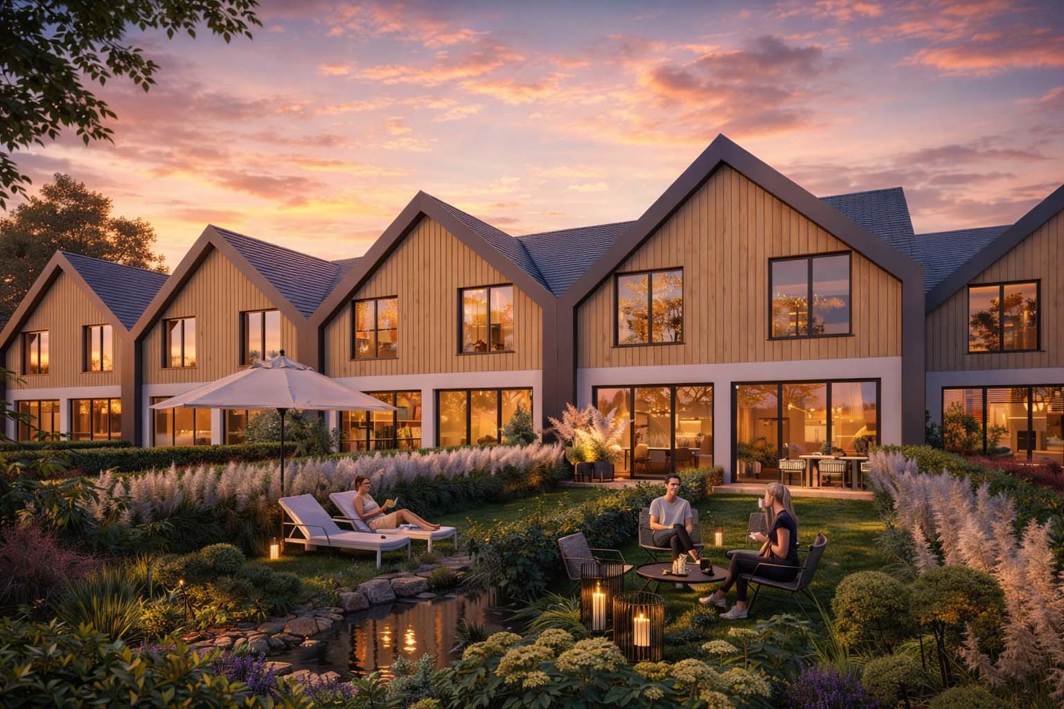 Osiedle Sarnia to nowoczesna inwestycja domów w zabudowie szeregowej we Wrocławiu, zaprojektowana z myślą o osobach, które chcą mieszkać komfortowo, ale bez rezygnacji z prywatności i dostępu do miasta. To kameralna przestrzeń, w której codzienność jest spokojna, a wszystko, czego potrzebujesz, znajduje się w zasięgu kilku minut.